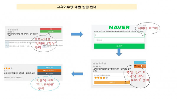 3. 유의 사항 - 상단의 [교육 신청하기] 버튼을 클릭하여 네이버 아이디와 비밀번호를 입력하여 로그인 후 교육신청 완료 - 온라인 실시간 강의를 수강하기 위해서는 사전에 노트북 또는 스마트폰에 ZOOM 어플을 설치하고 개별 발송되는 문자를 확인 후 교육 참석 4. 기타 사항 - 본 교육은 4월/ 6월/ 9월/ 12월 첫째 주 금요일에 개최 예정 - 본 교육은 등록 후 1년 이내에 이수하여야 하는 교육 시간(12시간)에 포함 - 공통/기본 교육 4시간 인정(신규 필수) - 교육 이수증은 등록 서류 제출 시 필수 지참(유효기간은 6개월) - 교육 이수증은 교육 이수 후 홈페이지_교육신청 게시판_해당 교육신청 게시글_강의평가 별점 등록 후 발급 - 등록 사전교육은 신규 등록을 위한 제공기관을 대상으로 하는 교육으로 카카오톡 알림을 하지 않음 - 교육 문의 : 강원도지역사회서비스지원단 진희연(☎ 033- 248-5722)