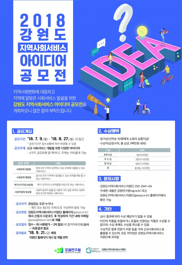 2018년 강원도 지역사회서비스 아이디어공모전 개최 안내!