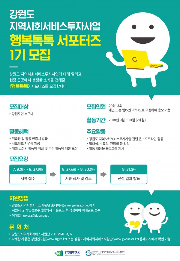 강원도 지역사회서비스투자사업 "행복톡톡" 서포터즈 1기 모집 (연장)