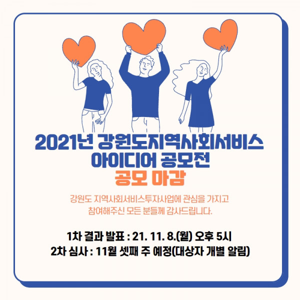 2021년 강원도 지역사회서비스아이디어 공모전이 마감되었습니다.