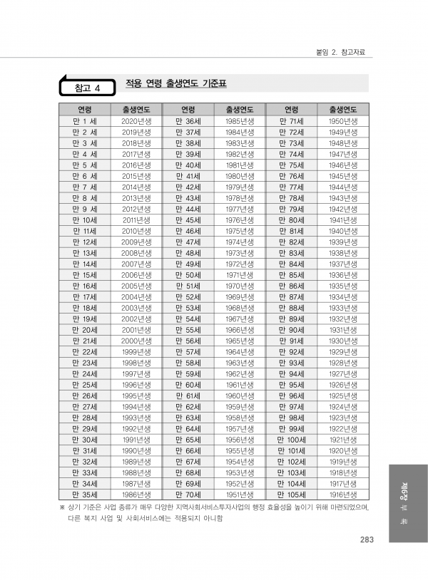 2021년도 기준 건강보험료 소득판정기준표 및 적용 연령 출생연도표