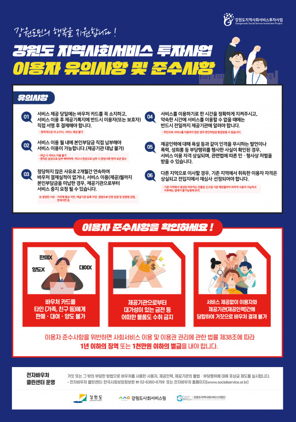 강원도 지역사회서비스 투자사업 이용자 준수사항 포스터 발송 안내