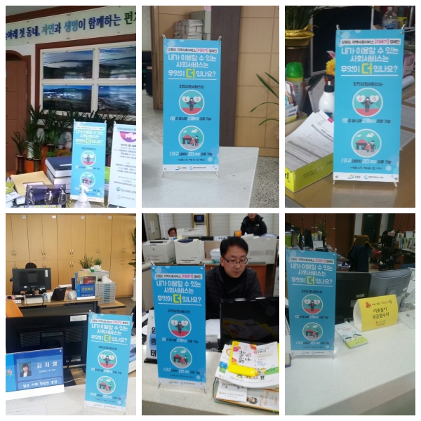 사회서비스 접수창구인 읍면동사무소에 거치할 미니배너를 제작하여