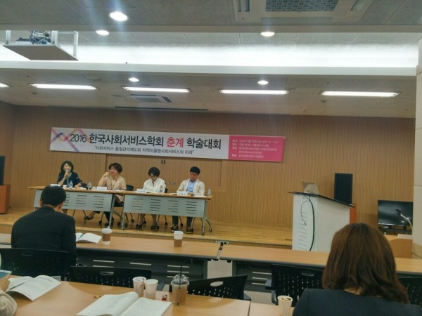 강원도지역사회서비스지원다(단장:이영길 선임연구원)은 2016년 5월 13일 (금) 서울 여의도 이룸센터 누리홀에서 개최된 한국사회서비스학회 춘계 학술대회에 참석했습니다.