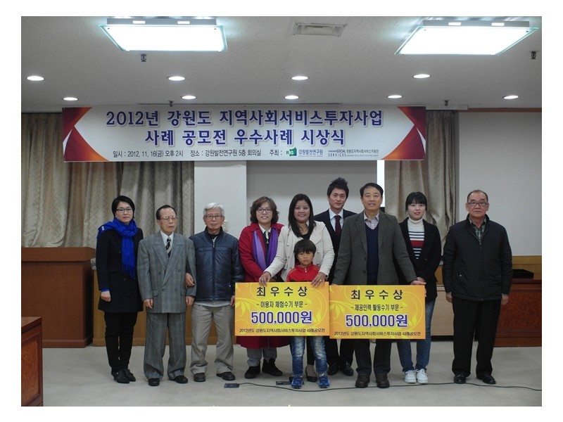 2012년도 강원도지역사회서비스투자사업 사례공모전 시상식이 있었습니다