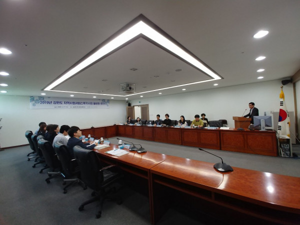 강원도와 강원연구원(원장: 육동한) 지역사회서비스지원단(단장: 박상헌 선임연구위원)은「2019년도 강원도 지역사회서비스투자사업 활성화 회의」(이하 회의)를 5월 2일(목) 오전 11시부터 오후 3시까지 강원연구원 6층 중회의실에서 개최했다.