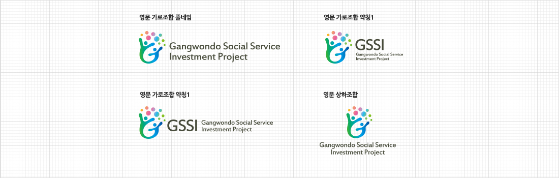 강원도 지역사회서비스 투자사업 로고는 ‘행복을 키우는 나무’라는 컨셉으로 두 팔을 펼친 두 사람을, 강원(Gangwon)의 영문 이니셜 ‘G’로 형상화하여 생동감 넘치는 강원도민을 표현하였으며, 결실을 맺은 다채로운 컬러의 열매들은 사회서비스 투자사업의 활성화와 모두가 더불어 행복한 삶을 누리도록 하는 사회서비스의 가치를 상징합니다. 온화한 컬러와 부드러운 디자인은 친근하고 따듯함을 내포하고 있습니다.